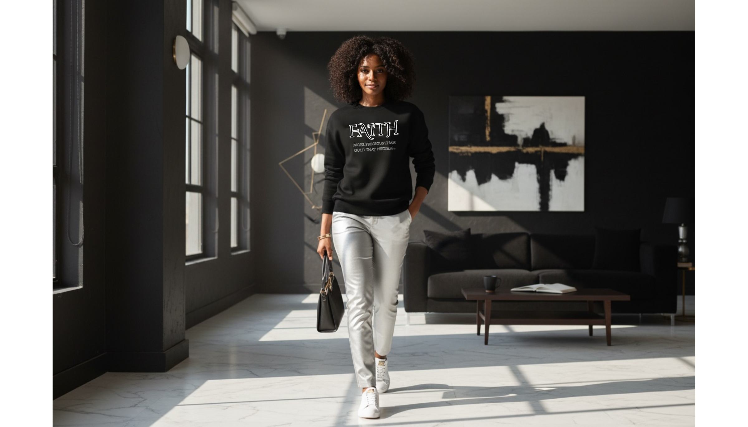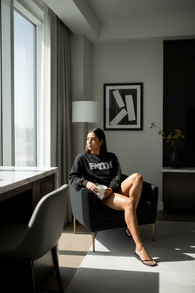 The material is soft, thick, and warm. Perfect for cool mornings or late-night reflection. The lettering stands out boldly but tastefully, and it’s held up beautifully after several washes. I’ve worn it to church, family outings, and even casual Fridays, and I always get compliments or questions about where it’s from.